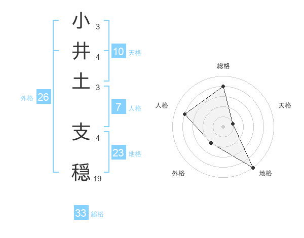 小井土 支穏さんを姓名の画数から五運を鑑定