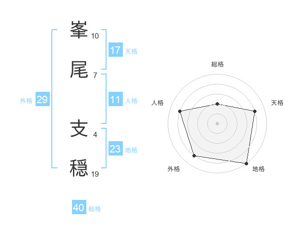 峯尾 支穏さんの天格は17画の4点!