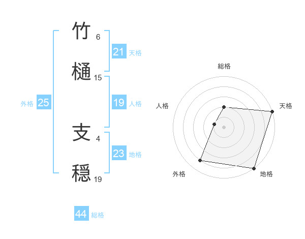 竹樋 支穏さんの総格は44画の2点!