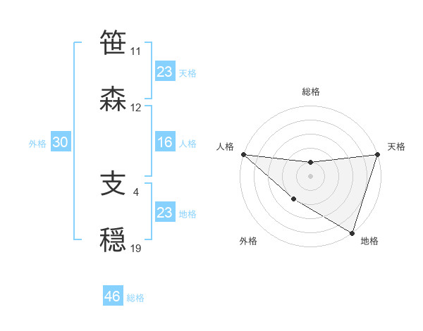 笹森 支穏さんを姓名の画数から五運を鑑定