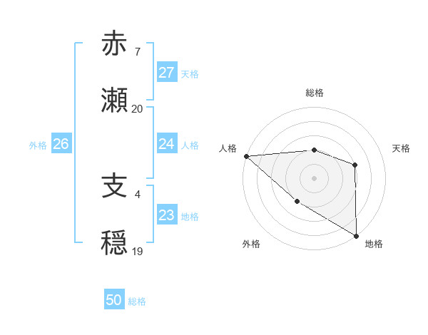 赤瀬 支穏さんを姓名の画数から五運を鑑定