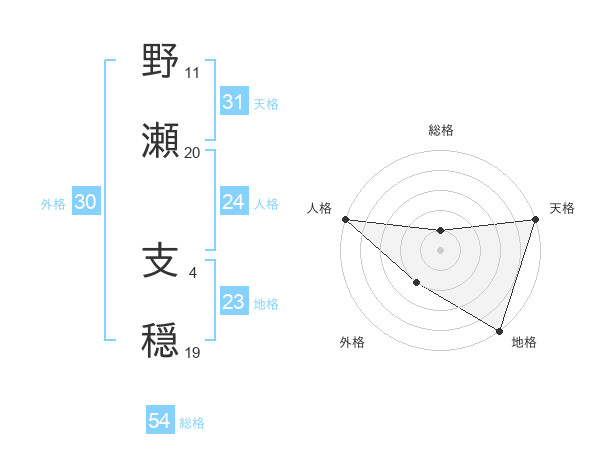 野瀬 支穏さんの天格は31画の5点!