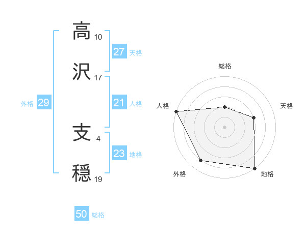 高沢 支穏さんの総格は50画の2点!