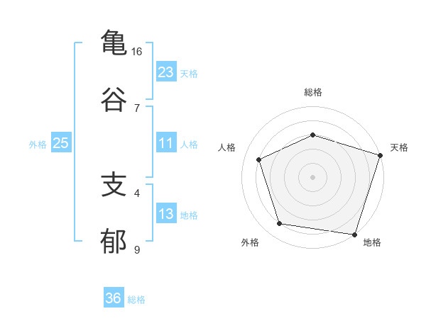 亀谷 支郁さんを姓名の画数から五運を鑑定