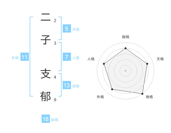 二子 支郁さんの地格は13画の5点!