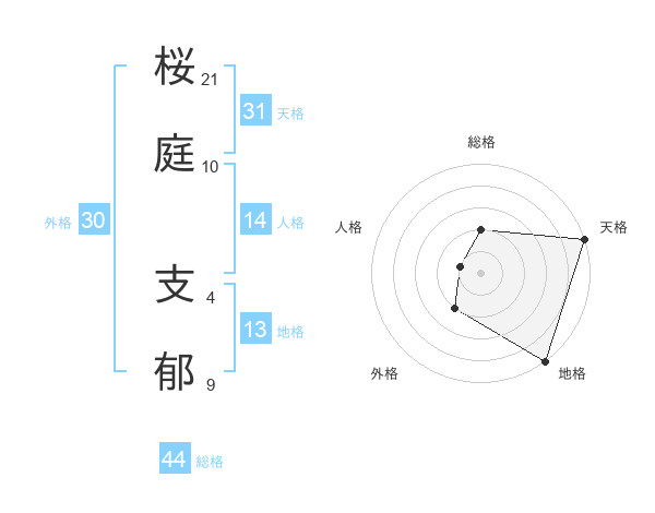 桜庭 支郁さんの総格は44画の2点!