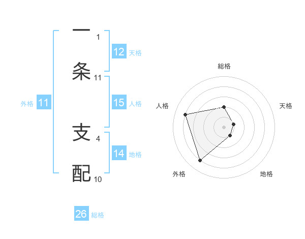 一条 支配さんの総格は26画の2点!