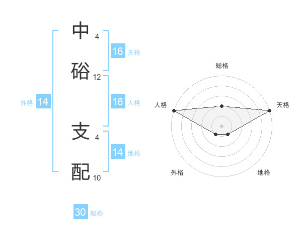 中硲 支配さんの総格は30画の2点!