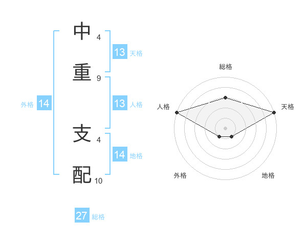 中重 支配さんの人格は13画の5点!