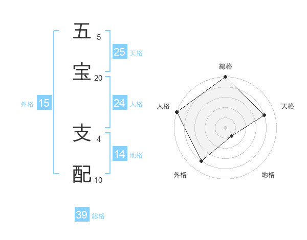 五宝 支配さんの総格は39画の5点