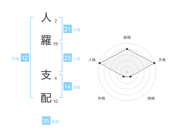 人羅 支配さんの総格は35画の4点!