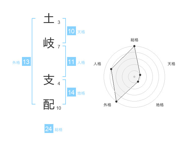 土岐 支配さんの外格は13画の5点!
