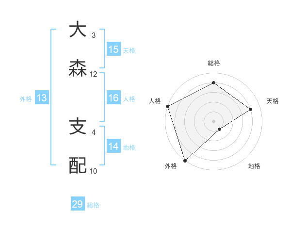 大森 支配さんの総格は29画の4点!