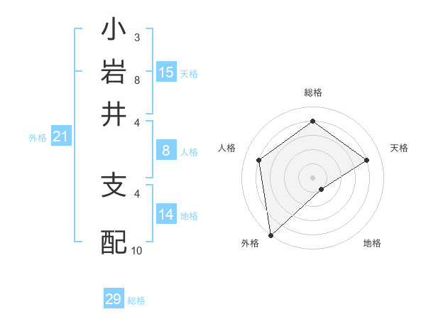 小岩井 支配さんの総格は29画の4点!
