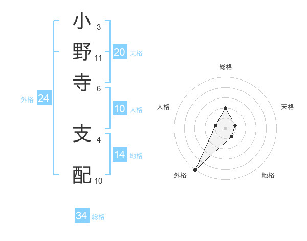 小野寺 支配さんの総格は34画の2点