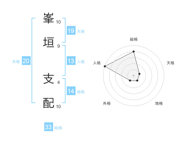 峯垣 支配さんの天格は19画の1点!