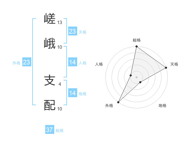 嵯峨 支配さんの総格は37画の5点!