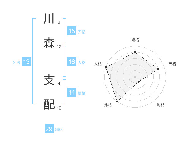 川森 支配さんの総格は29画の4点!