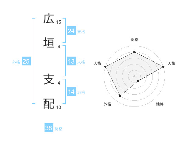 広垣 支配さんの総格は38画の4点!
