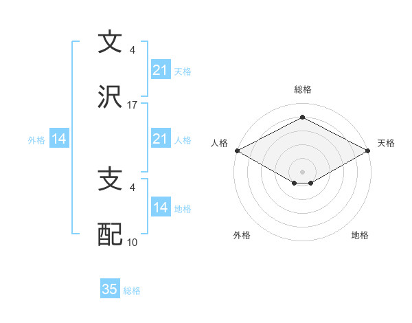 文沢 支配さんの天格は21画の5点!