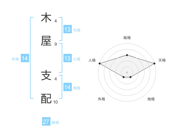 木屋 支配さんの総格は27画の3点!