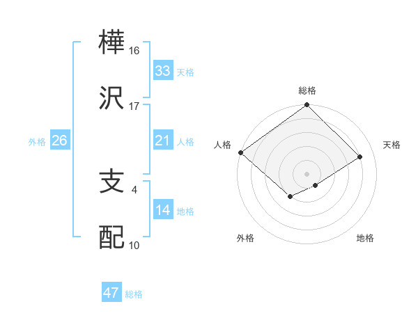 樺沢 支配さんを姓名の画数から五運を鑑定