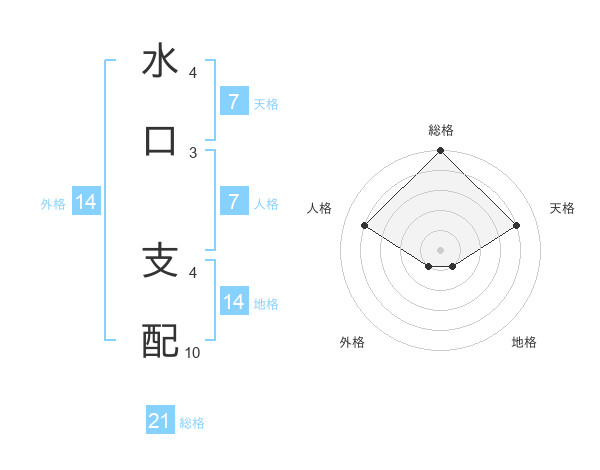 水口 支配さんの総格は21画の5点!
