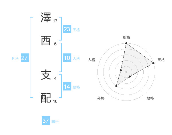澤西 支配さんの天格は23画の5点!