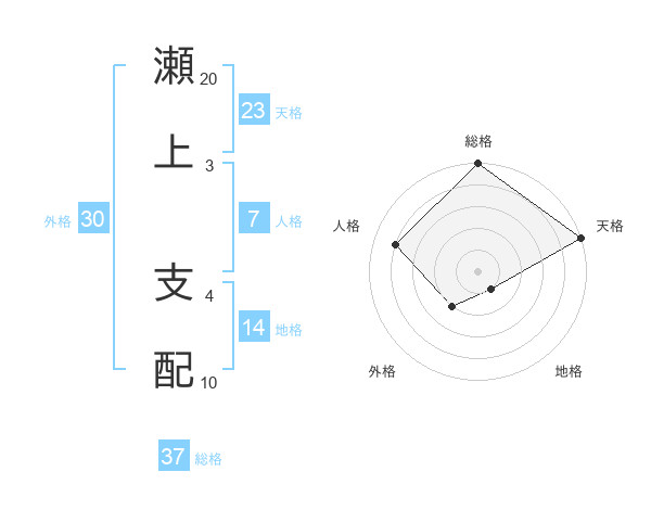 瀬上 支配さんを姓名の画数から五運を鑑定