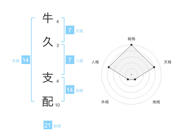 牛久 支配さんの総格は21画の5点!