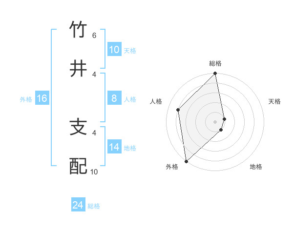 竹井 支配さんの総格は24画の5点!