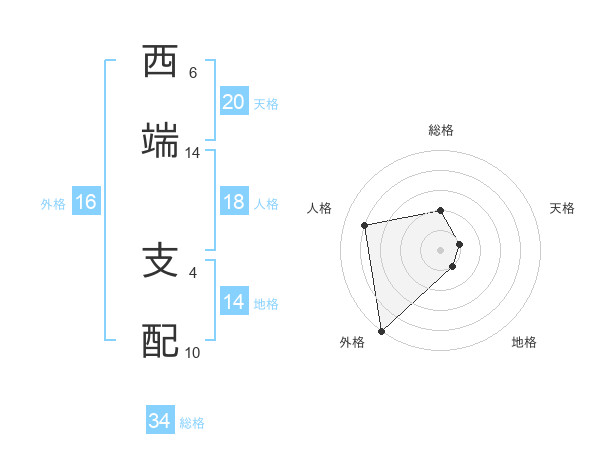 西端 支配さんの総格は34画の2点!
