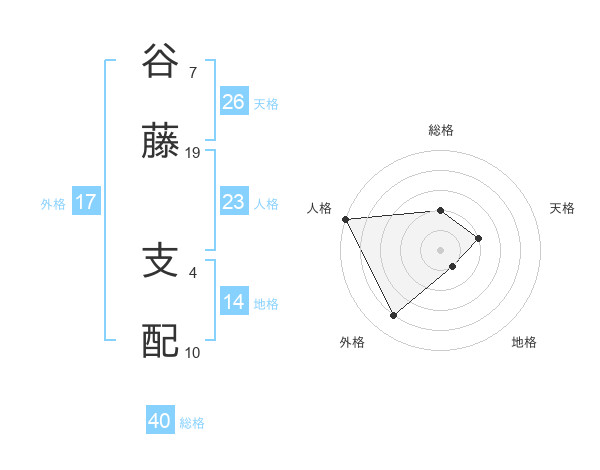 谷藤 支配さんを姓名の画数から五運を鑑定