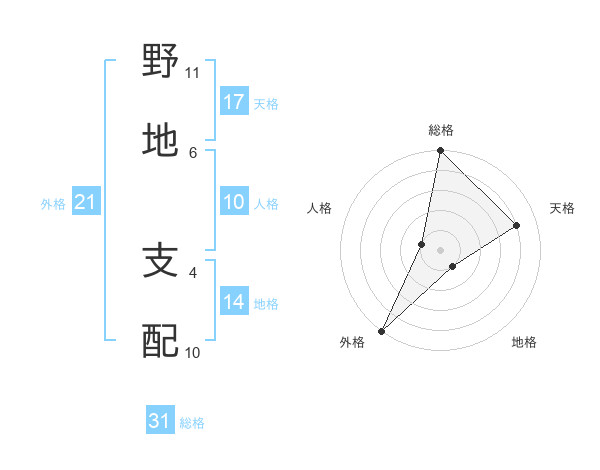 野地 支配さんの総格は31画の5点!