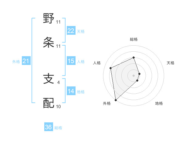 野条 支配さんの外格は21画の5点!
