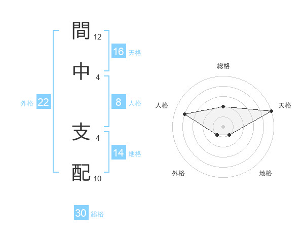 間中 支配さんの天格は16画の5点!