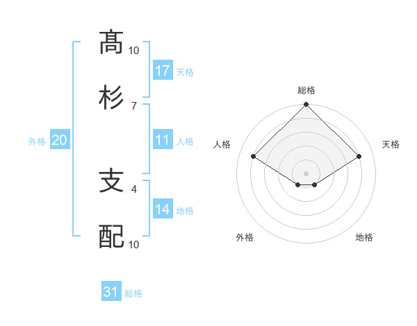 髙杉 支配さんを姓名の画数から五運を鑑定