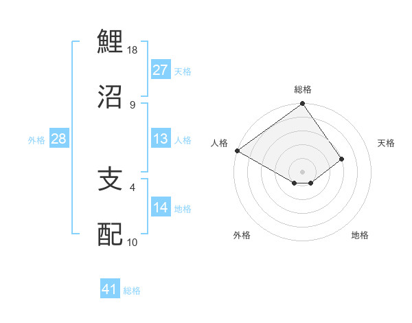 鯉沼 支配さんを姓名の画数から五運を鑑定