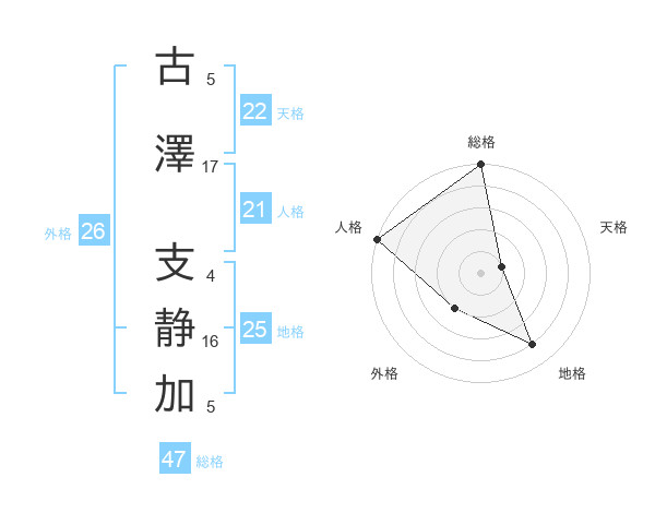 古澤 支静加さんの総格は47画の5点!