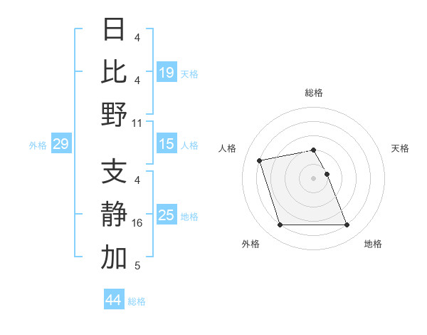 日比野 支静加さんの地格は25画の4点