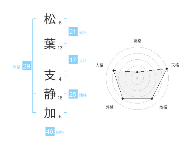 松葉 支静加さんを姓名の画数から五運を鑑定