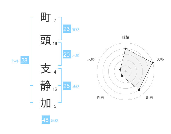 町頭 支静加さんを姓名の画数から五運を鑑定