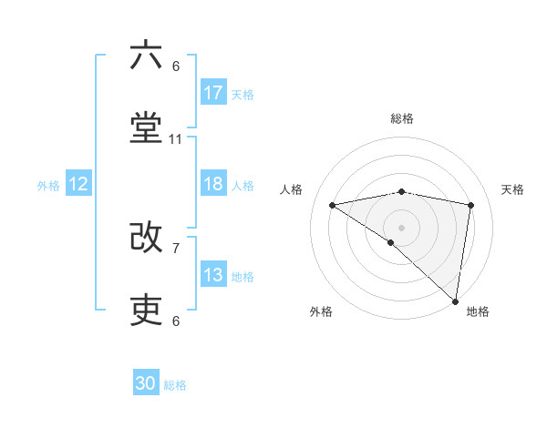六堂 改吏さんを姓名の画数から五運を鑑定