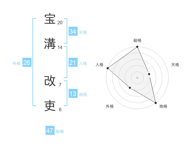 宝溝 改吏さんの総格は47画の5点!