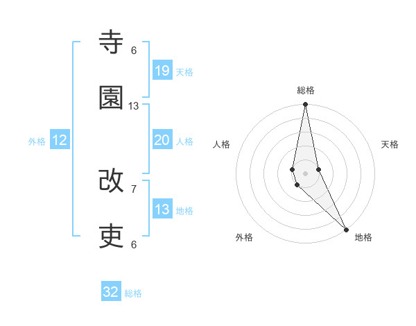 寺園 改吏さんを姓名の画数から五運を鑑定