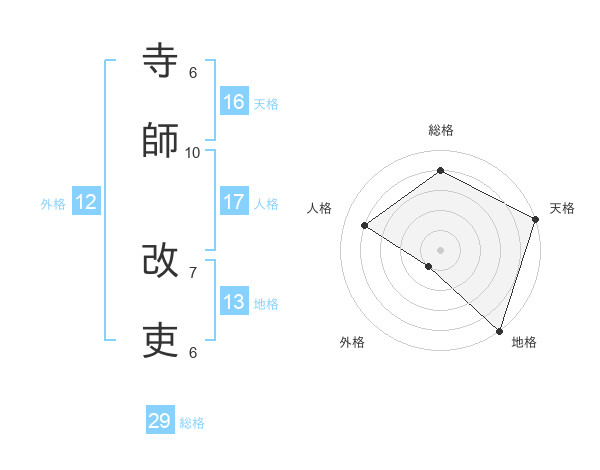 寺師 改吏さんを姓名の画数から五運を鑑定