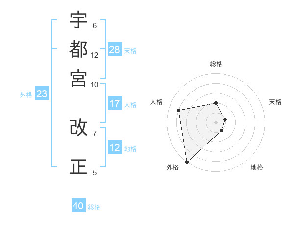 宇都宮 改正さんを姓名の画数から五運を鑑定