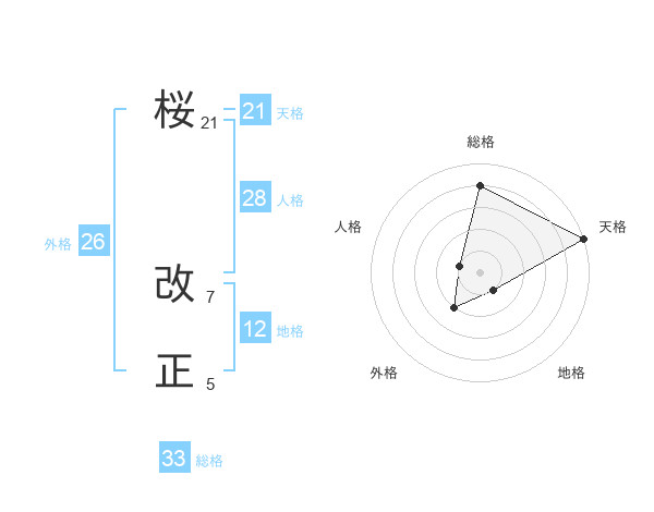 桜 改正さんの総格は33画の4点!