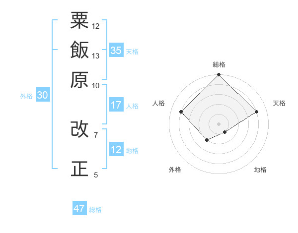 粟飯原 改正さんの総格は47画の5点!