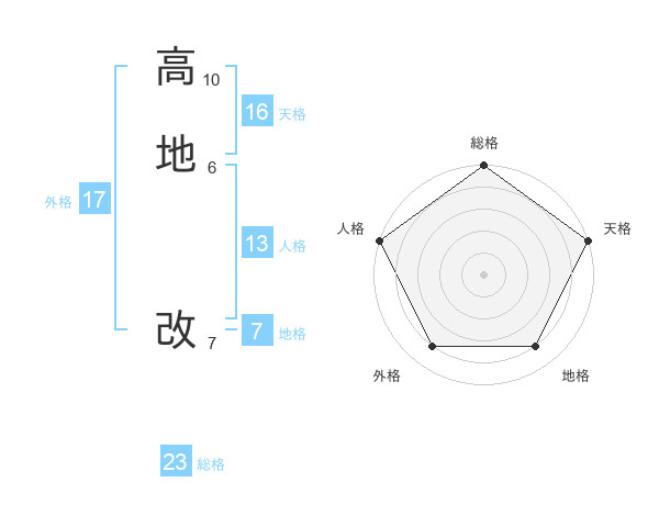 高地 改さんの天格は16画の5点!